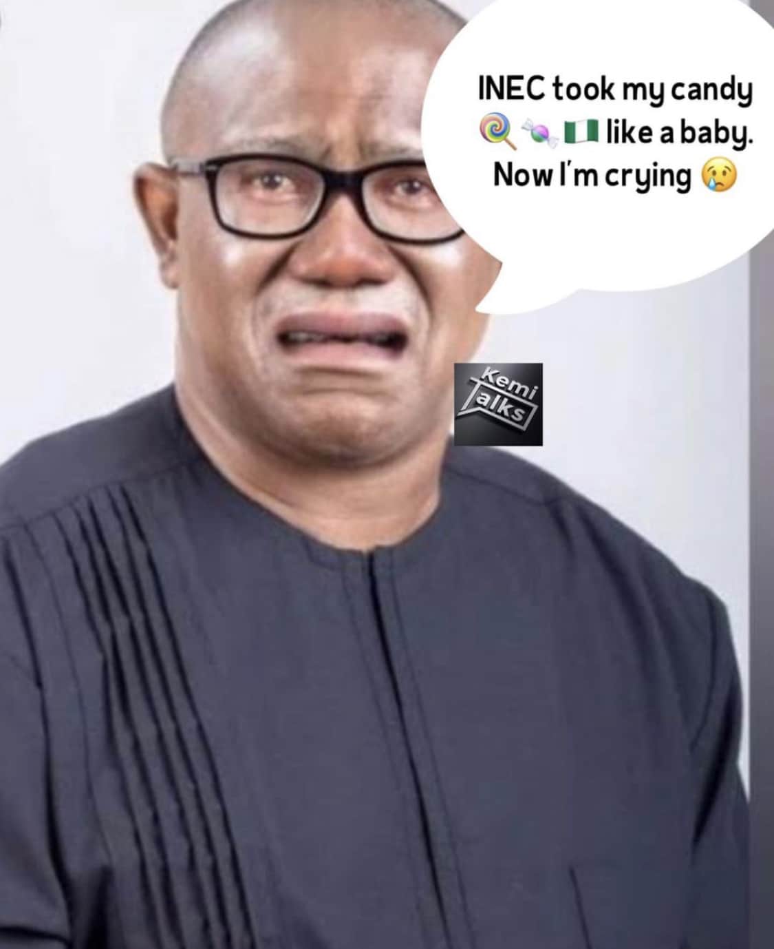 Kemi who took to instagram to mock the candidate for reportedly crying over his loss said that the country was nobody’s candy and hence couldn’t be stolen.