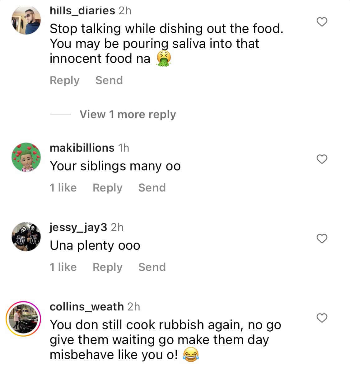 Popular Nigerian cross dresser James Brown, has shown off his ‘cooking skills’ after he shared a video of him dishing out food to a bunch of children he named his siblings.