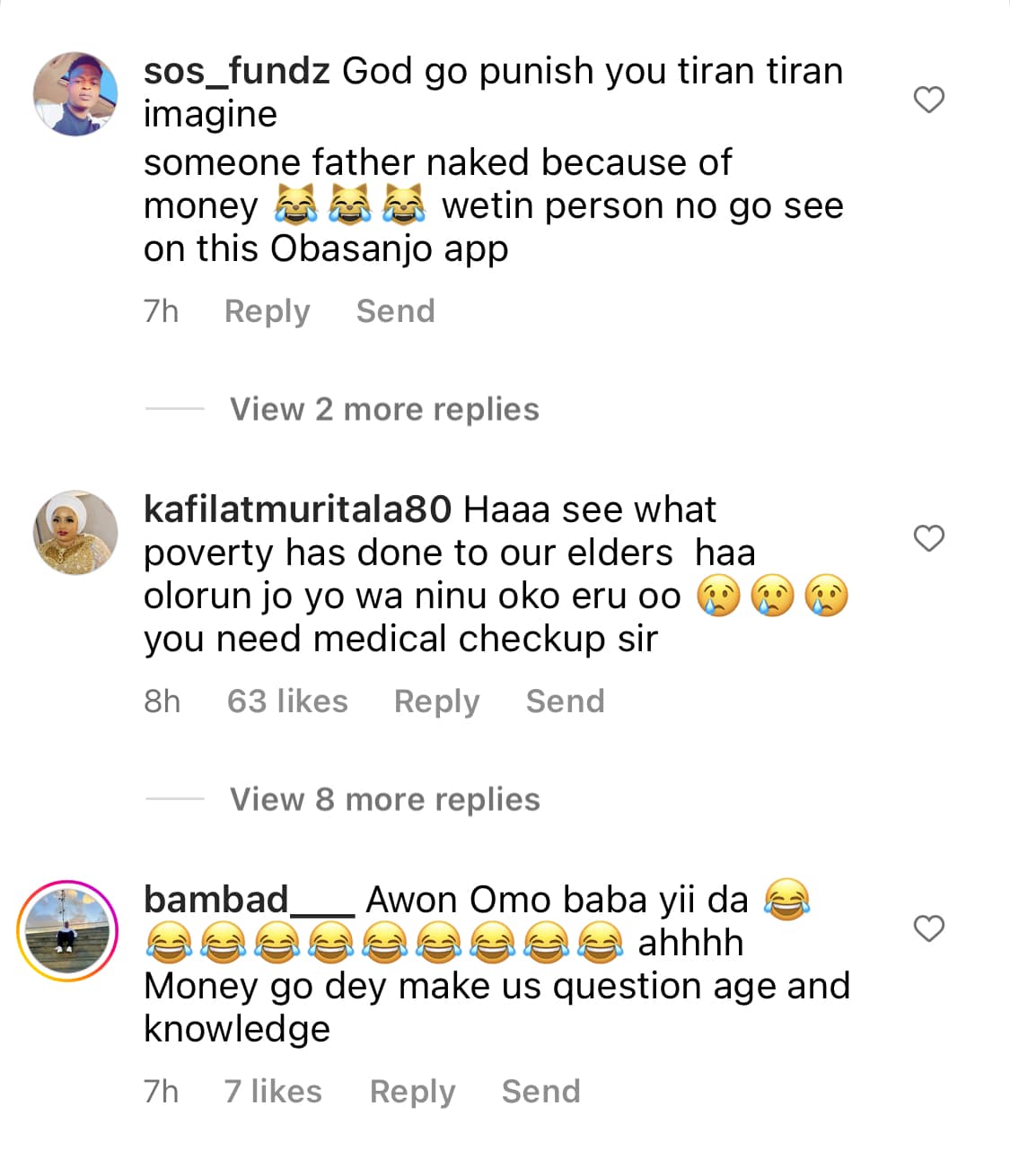 Veteran Nollywood actor Ebun Oloyede popularly known as Olaiya Igwe, has shocked many after he took to the waters unclad to pray drastically for the victory of APC presidential candidate Bola Tinubu.