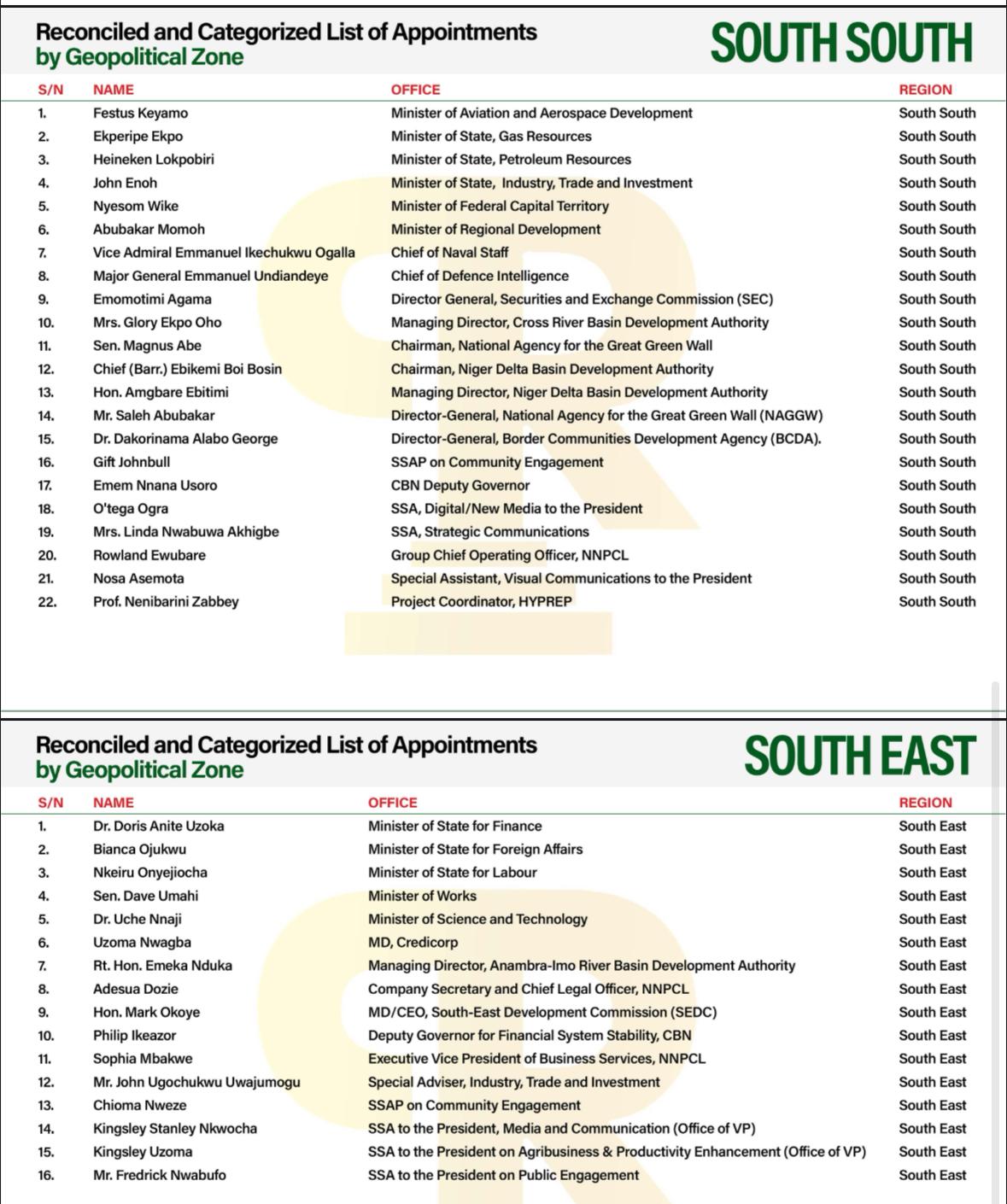Of those 63 southern positions, 29 were from the South West, 21 from the South South, and 16 from the South East.